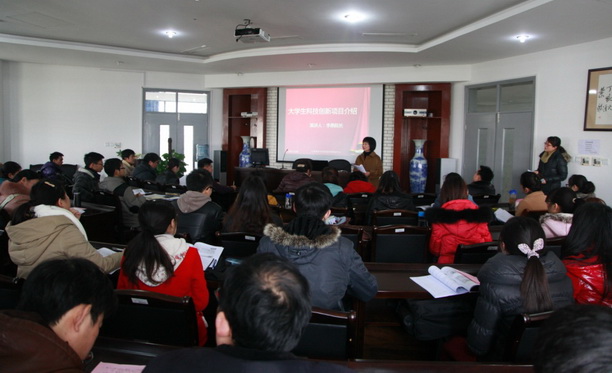 食品学院大学生创新优秀指导老师杨福馨教授在大学生创新项目上有丰富的经验,2012年度他所指导的大学生创新团队荣获全国挑战杯铜奖。杨老师与同学们分享他自己带领创新项目的经历,一个个经典的科创经历妙趣横。最后,科创管理员张老师向大家解读《大学生创新活动计划项目工作手册》,强调发挥学生的主动性,加强和指导老师的联系,重点讲解了项目经费的使用项目成果的培育。