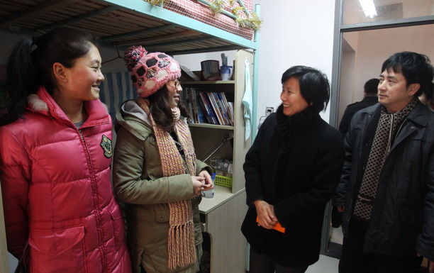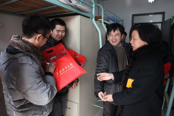 时值严冬,寒流涌动,同学们的温冷始终牵挂着校领导的心。1月9日,校党委书记虞丽娟,副书记、副校长黄晞建在学生处相关负责人以及各学院学生工作负责人的陪同下来到本科生公寓,为大学生送上学校的关怀和慰问。
