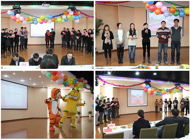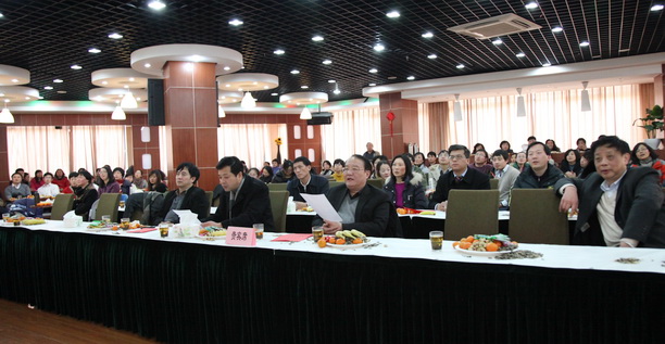 1月18日下午,2013年机关迎春联欢会在校工会多功能厅举行。校领导潘迎捷、吴嘉敏、黄晞建、顾乃达与机关教职工欢聚一堂,共迎新春。机关党委书记张宗恩宣布团拜会开始。