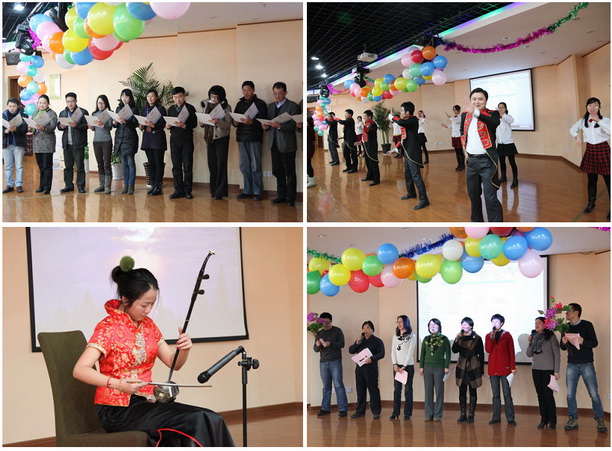 1月18日下午,2013年机关迎春联欢会在校工会多功能厅举行。校领导潘迎捷、吴嘉敏、黄晞建、顾乃达与机关教职工欢聚一堂,共迎新春。机关党委书记张宗恩宣布团拜会开始。