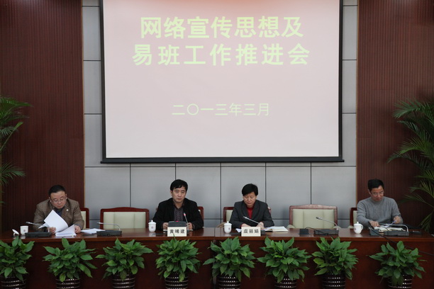 3月6日下午,我校网络宣传思想及易班工作推进会在行政楼137召开。校党委书记虞丽娟,校党委副书记、副校长黄晞建等有关领导出席会议。会议由黄晞建副书记主持。