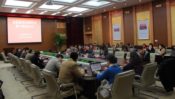 聘任仪式上,人事处程彦楠副处长向与会人员宣读了许苏明教授的个人简历和学术成就。许教授是东南大学国家精品课程马克思主义基本原理课程建设负责人,主持多项国家级和省部级重点课题,同时也是南京市政协委员、常委,南京市政府参事。许苏明教授对加入上海海洋大学表示感谢,愿为学校马克思主义和思想政治教育学科发展奉献自己的努力。黄晞建副书记、副校长对许苏明教授加盟我校表示热烈欢迎,他高度评价了许苏明教授的专业成就,指出思想政治教育工作本质上是做人的工作,各种学科的融合将进一步促进思想政治教育工作的深入开展,并代表学校向许教授颁发了兼职教授聘书。