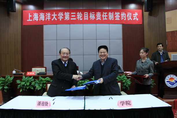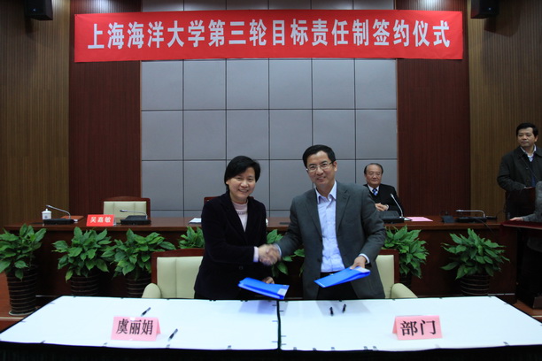 在随后的签约仪式上,校长潘迎捷与9个学院(部)的负责人签订了2013-2016年目标责任书和2013年年度目标责任书,并与机关行政部门代表——教务处处长张宗恩签订了2013年工作任务书。校党委书记虞丽娟与机关党委部门代表——党委宣传部部长江卫平签订了2013年工作任务书。