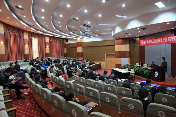 3月27日下午,学校第三轮目标责任制签约大会在行政楼137会议室举行,在校校领导和中层干部参加会议,会议由校党委副书记吴嘉敏主持。