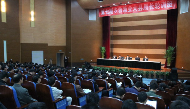 4月19日上午,全国农牧渔业大县局长轮训沿海渔业重点县渔业局长班在我校开班。开班式由农业部管理干部学院院长蒋协新主持,上海海洋大学校长潘迎捷、东海区渔政局局长李富荣分别致辞,农业部人事劳动司潘学峰副司长作动员讲话。来自沿海13个省(区、市)渔业重点县的渔业局长,产业技术体系专家以及部系统青年干部等共计97人参加本期培训。
