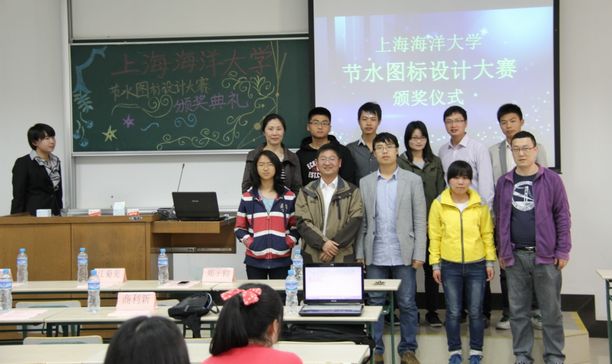 4月27日下午1点, 2教104教室里传来此起彼伏的掌声,为期一个半月的上海海洋大学节水图标设计大赛在这里进行最后一个环节——颁奖仪式。校党委宣传部副部长郑宇钧老师,水产与生命学院党委副书记林海悦老师,团委书记商利新老师,后勤管理处赵海鹏老师和科学商店社区水环境服务部指导老师徐灿出席了此次颁奖仪式。
