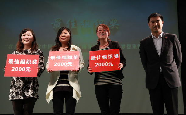 团市委副书记杨元飞为获得最佳组织奖的学院颁奖