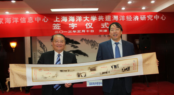 5月10日下午,我校与国家海洋信息中心共建海洋经济研究中心协议书签约仪式在天津举行。国家海洋局副局长王宏、国家海洋局政策法规和规划司司长王殿昌、国家海洋信息中心主任徐胜、副主任何广顺、石绥祥、国家海洋局政策法规和规划司海洋经济处处长沈君及国家海洋信息中心各处、室负责人,上海海洋大学校长潘迎捷、副校长黄硕琳和相关学院、部门负责人及专家出席了签约仪式。