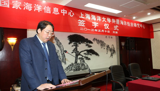 国家海洋信息中心徐胜主任在致辞中指出,在党的十八大报告中,明确提出“提高海洋资源开发能力,发展海洋经济,保护海洋生态环境,坚决维护国家海洋权益,建设海洋强国”。建设海洋强国已经成为一项国家战略,国家和人民对于海洋经济的诉求将越来越明显,我们正面临良好机遇,因此要充分利用双方优势,通过共建海洋经济研究中心这一平台,大力发展海洋经济管理、研究和人才培养,促进双方的交流与融合,在不久的将来交上一份满意的答卷,为国家的海洋经济发展做出贡献;并表示国家海洋信息中心将会全力支持海洋经济研究中心建设。