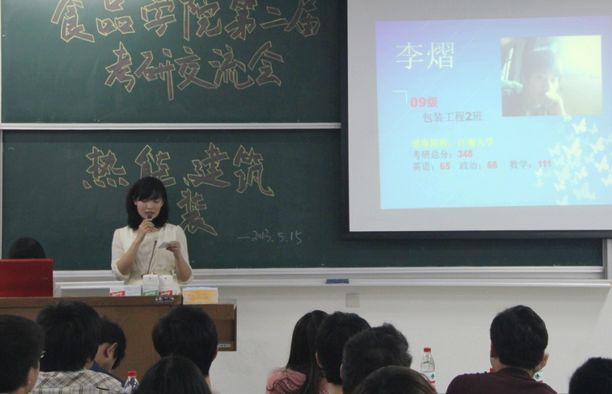 为进一步做好学院大学生学业生涯导航工作,推进学风建设,2013年5月15日晚6点,食品学院举办第二届考研经验交流会,会议邀请2009级考研升学成绩优异的学长,为准备考研的同学们指点迷津。