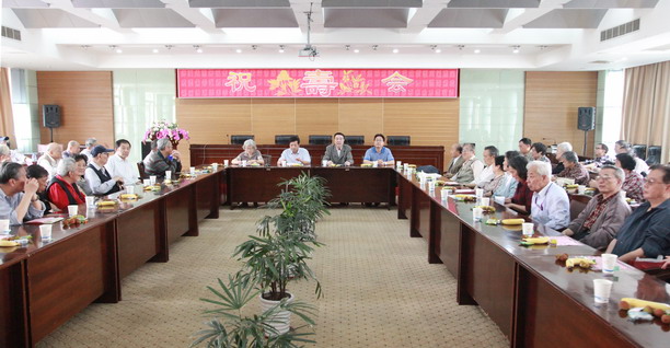 校退教协理事长林雅年教授致祝词,校领导潘迎捷校长、校党委吴嘉敏副书记出席祝寿会,吴嘉敏副书记致祝词,祝全体老寿星健康长寿。校退管会办公室主任人事处郑卫东处长发表讲话。寿星代表严伯奋教授、孙满昌教授发言。学校各部门的领导也出席了今天的祝寿会。近100名老寿星们和全体参加祝寿会的人员济济一堂,欢乐融融。在“祝你生日快乐”的音乐声中分享生日蛋糕。并留下了珍贵的合影。