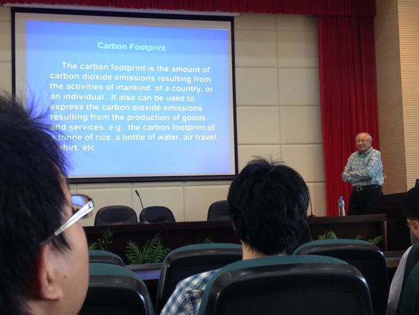 Boyd教授首先详细介绍了奥本大学渔业与水产养殖系现有科研设施、课程设置、国际交流等情况,他说奥本大学与上海海洋大学一直都有密切的交流。早在1991年,他本人就到过海大,目睹了海大二十几年的发展和变化。Boyd教授详细介绍了如何利用LCA (life cycle analysis)法,对斑点叉尾鮰鱼片生产过程中的碳足迹进行计算。