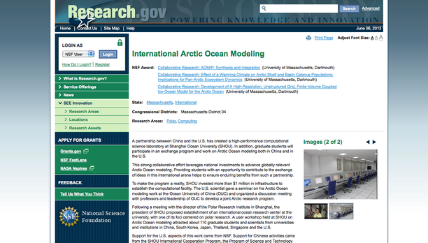 该报道突出了上海海洋大学国际海洋研究中心建立的中美北极模型研究联合实验室。该实验室以全球/北极模型研究为重点,以国际北极联合研究为内容,开展人员交流和人才联合培养工作。为建设中美北极模型研究联合实验室,提高全球-极地高分辨率模型的计算能力,上海海洋大学先后投入资金超过100万美元,建设了浮点计算能力在25万亿次以上的计算机集群系统。该实验室与美国合作实验室之间通过中美高速网络,实现了数据,计算能力等资源共享,并吸引和汇聚相关极地科学的研究力量、青年研究人员和学生共同投入开展北极的研究工作。其中,在2012年已经有一名上海海洋大学研究生被派往美国合作实验室进行交流学习。