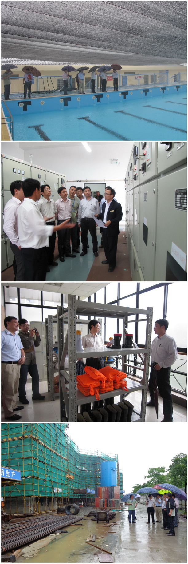 在召集会上后勤管理处处长俞渊传达了沪教委后(2013)3号文件《关于做好2013年本市教育系统安全生产工作的通知》和沪教委后(2013)6号文件《关于做好2013年本市教育系统防汛防台工作的通知》的要求及我校已开展的相关准备工作,随即在滂沱大雨中检查组先后实地检查了共享区后勤用房基建工程、风雨操场基础工程井点降水施工、学生公寓A区第9小区维修应急值班室、第二餐厅二楼经营项目动迁准备情况、公共实验楼防汛物资仓库、生命学院大楼地下室集水井防汛水泵设施、第三餐厅一楼输配电高压一号开关站等场所,又到即将恢复开放的游泳池现场查验询问了相关准备情况。封副校长指出,学校近期施工项目较多,又汛期来临,各部门相关岗位工作人员必须保持警惕,安全之弦不能放松,思想上千万不能麻痹大意,对当前检查出的问题和隐患要高度重视、及时整改,要重点对水闸泵房、配电房提高日常巡逻检查频次。