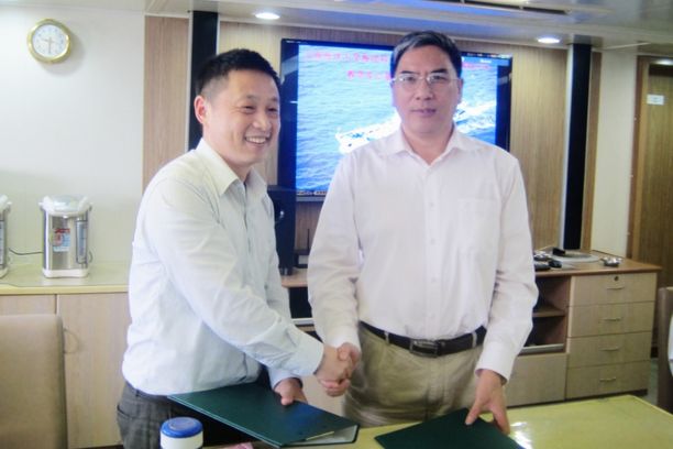 2013年6月15日上午,上海海洋大学海洋科学学院与东海航海保障中心上海海事测绘中心关于合作建立海洋测绘教学与就业基地的签约仪式在海巡166轮隆重举行。