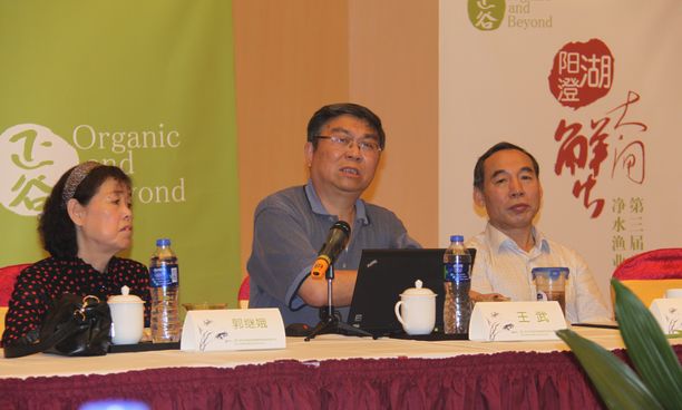 16日,王武教授参加了第三届生态绿阳澄湖净水渔业研讨会,给国家质监局、江苏省海洋渔业局、全国水产技术推广总站、中国渔业协会河蟹分会、苏州水产技术推广站等单位领导和阳澄湖当地渔民上了《净水渔业》生动的一课。指出虽然目前阳澄湖的水质污染主要由工业化、城镇化和农业生产污染造成,但我们水产养殖不但要获取经济效益,而且更要注重生态效益,使渔业由“污水渔业”转化为“净水渔业”。净水渔业以净化水质与生态养殖为主要目标,特别关心水生植被的建设。同时提出了改进的“八点”建议,使政府、院校、企业和渔民共同完成净水渔业的建设。与会各位领导完全赞同此观点,表示深受启发。同时王武老师还现场回答了渔民提出了阳澄湖底太硬无法种植水草等难题,渔民非常满意上海海洋大学对阳澄湖的知识和技术支撑。