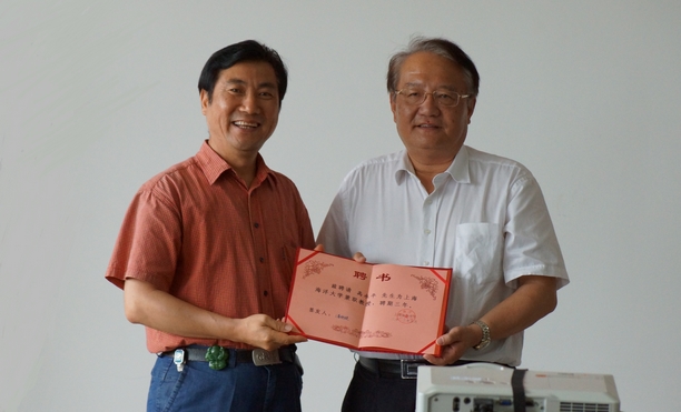 杨昕处长介绍了高永平教授的求学和工作经历,曾经五年的海军经历培养了他良好的身体和心理素质,也因此与海洋结下了渊源,高度评价了高永平教授在海洋学科业务等领域取得的成就,并对高永平教授加盟我校表示热烈欢迎。随后潘迎捷校长代表学校向高永平教授颁发了兼职教授聘书。高永平教授表示,受聘为我校兼职教授既有一份责任,还有一份承担,希望能够尽自己最大的努力为学校提供两个服务:一是为学校和学院中心发展服务,二是为青少年的健康成长服务。希望能够得到学校领导的支持和帮助,尽快融入学院和学校,与学校和学院同舟共济,共同发展。
