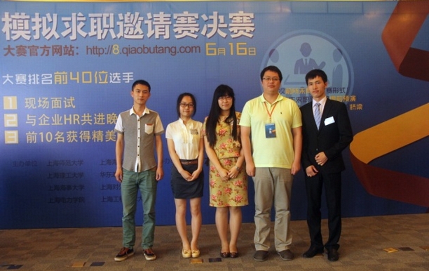荣获上海首届八校模拟求职邀请赛冠军选手贾斌(右起一)