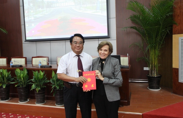 上午9:30,Sylvia Earle 博士首先从我校黄硕琳副校长手中接过聘书。随后,她给学校师生们作了“可持续海洋:远景与现实”的学术报告,回答了师生们的很多提问。中午黄硕琳副校长代表海洋大学宴请了Sylvia Earle 博士。下午,Sylvia Earle 博士与深渊科学技术中心的研究人员座谈,对中心的发展思路和中心完成的11000米载人潜水器的概念设计给出了她的咨询意见。这次来校访问得到了上海电视台国际频道(ICS)的重视,他们派人对Sylvia Earle 博士的全天活动作了记录拍摄,并对她作了专访。