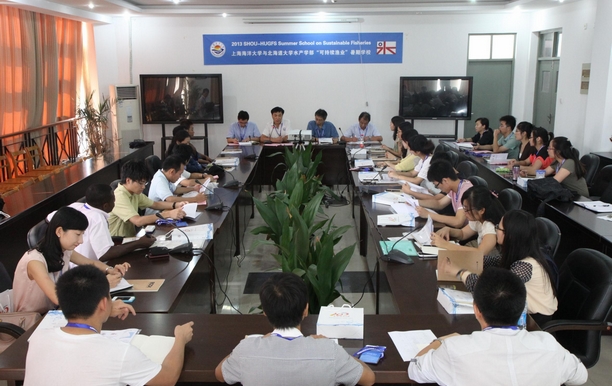 海洋学院副院长高郭平教授主持了开学仪式,研究生部主任高健教授致开幕辞。高健教授首先对学员们能来百年老校参加以“可持续渔业”为主题的暑期学校表示热烈欢迎,他指出近几年来渔业资源的过度利用已经在一定程度上严重影响到渔业的可持续发展,而中国和日本在亚洲是两个非常重要的渔业国家,这也意味着两个国家应承担更多的责任,以确保渔业资源的可持续利用,因此,以暑假学校为交流平台,在专家的指点下,使各国研究生能够充分交流,可以施展自己的才能。高健教授表示上海海洋大学是一所历史悠久的以海洋和渔业科学研究为优势的院校,我们将充分发挥我校海洋学科方面的优势,力争办好第一届两校暑期学校。