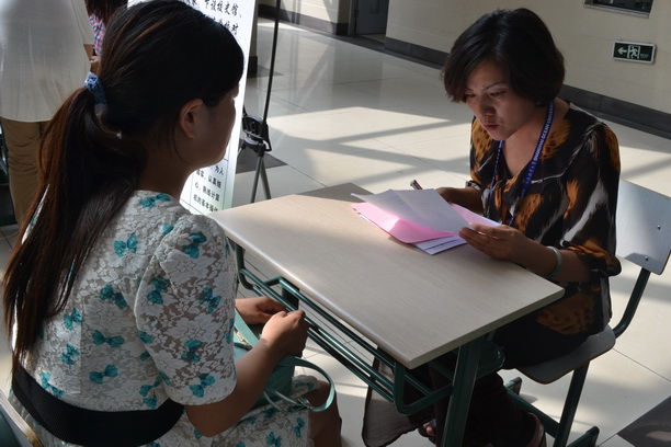 用工部门老师与应聘学生交流