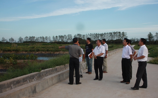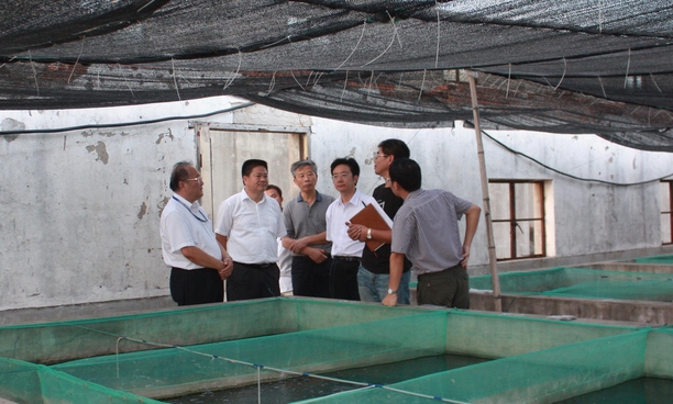 校领导检查了滨海基地内场已经投入使用的办公楼、教师和学生宿舍楼、实验室、篮球场、食堂、道路的使用情况,查看了刚完工正在试运行的室内水泥池养殖车间、循环水养殖设施等工作情况,询问了团头鲂亲本温室培育车间改造方案及室外水泥池建设计划。李家乐院长汇报了农业部团头鲂遗传育种中心项目实施情况,他说邹曙明教授领衔的科技团队从去年开始,陆续将团头鲂“浦江一号”和一批原种亲本及部分三角鲂家系引入基地池塘进行保种,今年孵化了团头鲂优质鱼苗60多万尾,还开展了家系选育等科研工作。