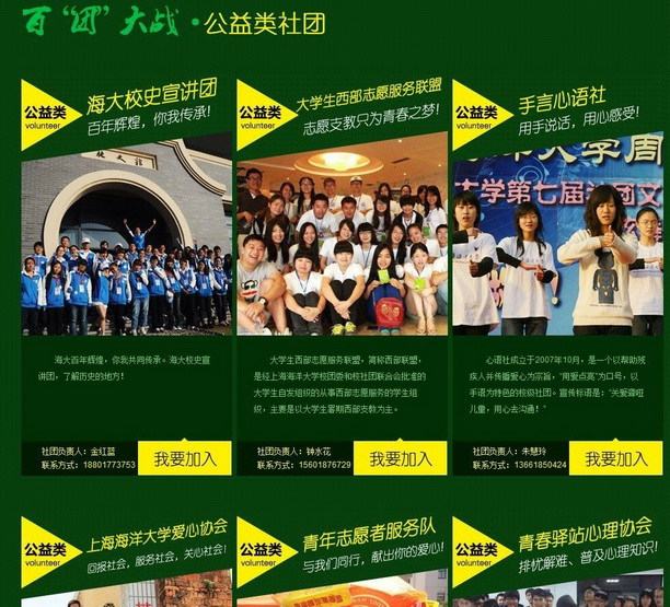 为深入学习贯彻党的十八大精神,坚持群众路线,丰富当代学生的课余生活,提高大学生的综合素质,营造和谐向上的文化氛围。由共青团上海海洋大学委员会主办,上海海洋大学社团联合会承办的百团招新活动在9月23日晚拉开了序幕。近百个社团齐出动,逾千人参与其中,彰显社团魅力,展现了我校欣欣向荣的社团风貌。
