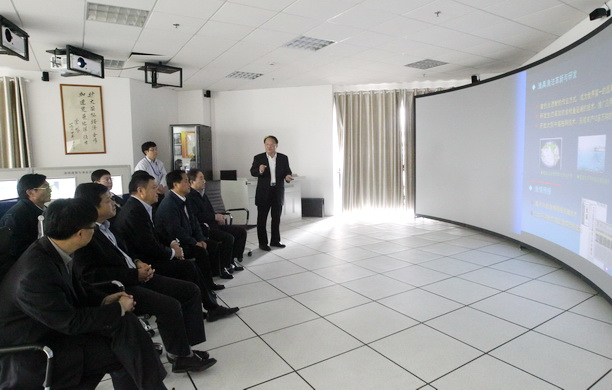 校党委书记吴嘉敏、校长潘迎捷陪同刘赐贵局长一行视察了我校图文信息中心和海洋遥感实验室,向各位领导介绍了我校校园布局规划和发展情况。随后,潘迎捷校长代表学校做了我校海洋学科建设与人才培养的专题汇报,潘校长在汇报中指出,我校由传统的水产大学向新型的海洋大学转变中,海洋学科建设是我们重中之重的主要任务。学校将抓住国家海洋局与上海市人民政府共建的机遇,打造“海洋学科特区”,推进内涵建设,坚持“聚焦、错位、合作”原则,全面加强海洋学科建设和人才培养工作。