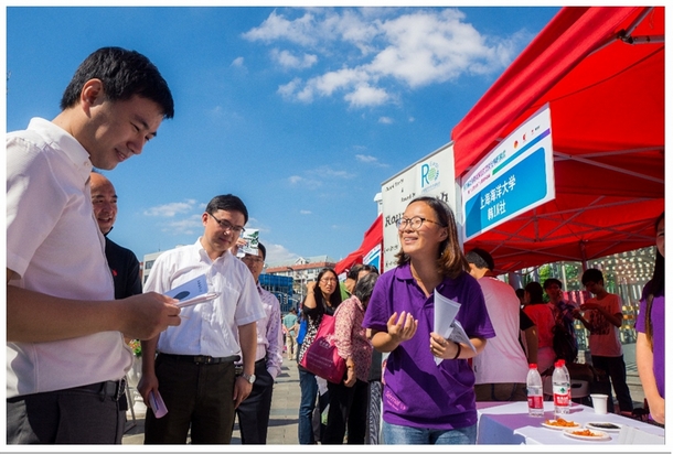 杨元飞书记参观我校韩IN社、Round Earth环保协会展台时对我校社团热情服务的态度和良好精神风貌给予了高度的评价,并鼓励社团要进一步加强同社区居民的互动。