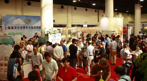 秋高气爽,晴天碧日的2013年10月11日至14日,以“缤纷水族、和谐生活”为主题的“2013第八届上海国际休闲水族展览会”在上海农业展览馆展出,为期三天半,已经圆满落下帷幕。本次休闲水族展览盛会,我校作为承办单位之一积极参与组织和协调,并负责七彩神仙、金鱼展示和比赛,攀世水族宠物健康中心隆重参展并布置在展会的最佳位置。展会筹备期间,我校黄硕琳副校长、李家乐校长助理和潘连德教授、陈再忠副教授、何为副教授多次出席展会筹备会,为展会顺利召开献计献策,全力支持;展会期间,我校吴嘉敏书记应邀出席开幕式,并到我校攀世水族宠物健康中心展位了解参展内容,看望全体参展师生以及我校为展会服务的部分大学生志愿者。
