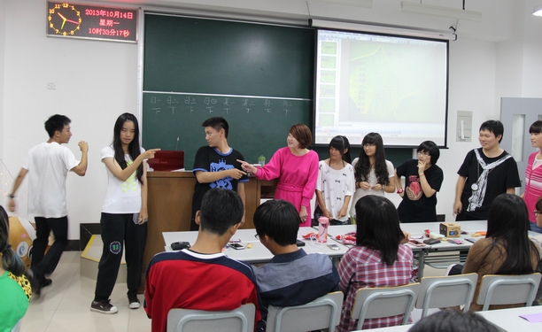 第二部分含水传歌环节邀请了十位同学来做游戏,分组竞猜歌名,说出正确歌名即可得到杯子一只。游戏中,笑点多多,同学们参与热情高涨。