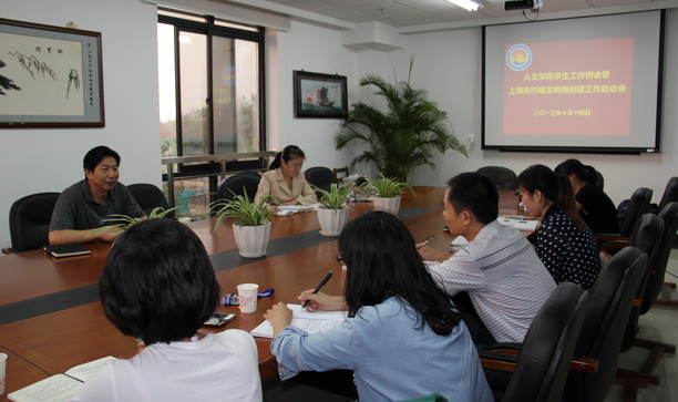 人文学院学生工作办公室2013年被学校推荐为上海市巾帼文明岗创建单位,为进一步开展和推动创建上海市巾帼文明岗的创建,10月14日下午人文学院学生工作办公室在行政楼206室召开了学生工作例会暨上海市巾帼文明岗创建工作启动会,人文学院院长、党委书记张继平出席了会议,会议由人文学院党委副书记高晓波主持。