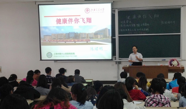 10月15日下午,在学校第二教学楼2103教室,应外国语学院邀请,上海市第六人民医院陈珺明医学博士为外国语学院2013级新生开展了一场主题为“健康伴你飞翔”的健康讲座。