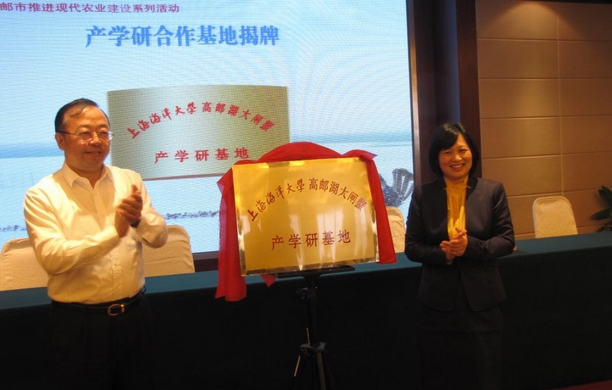 在签约、揭牌仪式上,何雅副书记发表了热情洋溢的讲话,指出上海海洋大学与江苏有悠远的历史渊源,自建校以来,广大师生员工以江苏作为最重要的教学与科研基地,这次上海海洋大学高邮湖大闸蟹产学研基地揭牌与合作签约,标志双方合作将向更高平台上、更大空间上迈进。