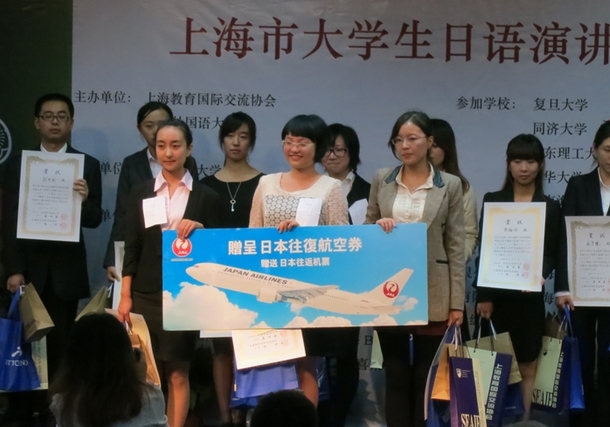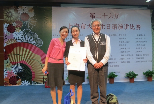11月2日,在上海理工大学图文信息中心,由上海教育国际交流协会与京都外国语大学联合主办的第二十六届上海市大学生日语演讲比赛圆满结束。此次演讲比赛,共有18名同学参加了的角逐,他们分别来自上海外国语大学、华东师范大学、复旦大学、同济大学、上海理工大学、华东理工大学等院校。我校日语专业四年级二班的索菲娅同学代表我校参赛,她以出色的表现从众多参赛选手中脱颖而出,获得优秀奖,这也是我校日语系学生第一次在重大比赛中获得最高奖。另外两名获优秀奖的选手分别是来自华东理工大学和上海理工大学代表的同学。3名获优秀奖的同学还获得了日本政府提供的赴日一周游的经费支持。