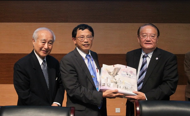 张清风校长代表台湾海洋大学向潘迎捷校长赠送纪念品
