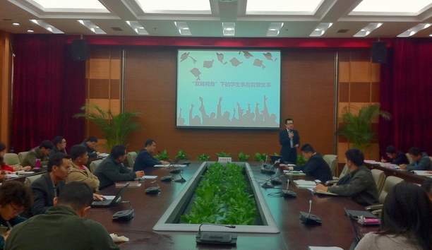 美国杜克大学MBA毕业、具有两家创业企业高级管理经验的锦程研究院执行院长张景岫先生为与会者做报告。张院长从学生事务管理面临新形势讲起,指出辅导员要实现监督、服务、发展三种角色的有效统一,要以发展视角变革学生事务管理,通过组织变革、文化变革、评估变革实现学生发展目标。在此背景下,张院长又以高教管理理论、管理学理论、心理学理论等知识点为例,指出学生事务管理者要提高领导力。针对我校辅导员的工作特点,张院长还着重讲述了在线教育对高等教育带来的挑战和机遇以及在此背景下如何更好地开展职业发展教育。