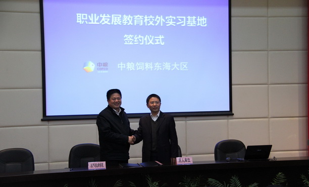 2013年11月19日,上海海洋大学水产与生命学院与企业共建职业实习基地合作协议签约仪式举行。中粮集团饲料部东海大区副总经理陈新河,通威饲料江淮片区总经理助理孙庆高,江苏中洋集团常务副总裁朱永祥,上海英孚教育集团人力资源总监陶玉红,上海长风海洋世界水族馆馆长王亭亭、人力资源总监王天虹,学院领导出席签约仪式。