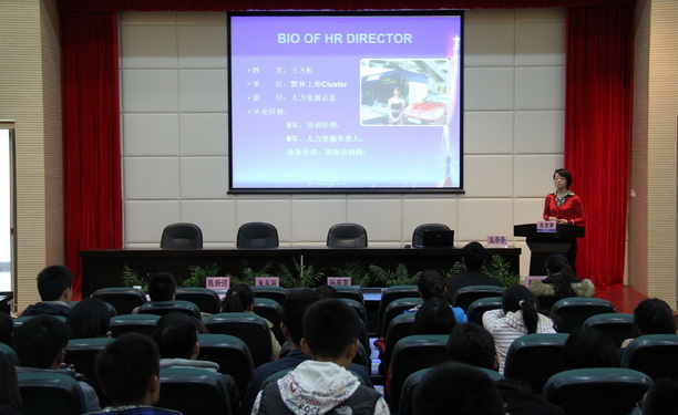 随后,上海英孚教育集团人力资源总监陶玉红、江苏中洋集团常务副总裁朱永祥、上海长风海洋世界水族馆馆长王亭亭、人力资源总监王天虹给在场学生做了企业介绍以及职业生涯应具备的素质报告。英孚教育作为全球大型的教育机构,陶总监指出跨国企业对于人才的要求是具有一定的海外经验,并且希望同学们能够走出国门,锻炼自我。江苏中洋集团致力于长江珍惜鱼类的保护工作,以开发性保护为理念进行珍稀鱼类的人工繁衍与养殖。中洋集团的快速发展,也提供了水产养殖等各专业各层次的就业岗位,朱总也希望我院同学能够通过中洋集团的平台,积极为我国的水产事业做出贡献。上海长风海洋世界有限公司王馆长和王总监在报告中希望更多同学参与到水族行业中,繁殖、营救、保护海洋生物。