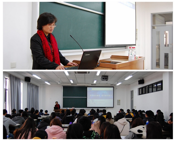 11月19日学校召开2014届毕业生信息发布会之际,中船工业成套物流有限公司人力资源部部长曾爱兰女士应学校邀请,为我校海洋学院、工程学院学生做了精彩的报告。