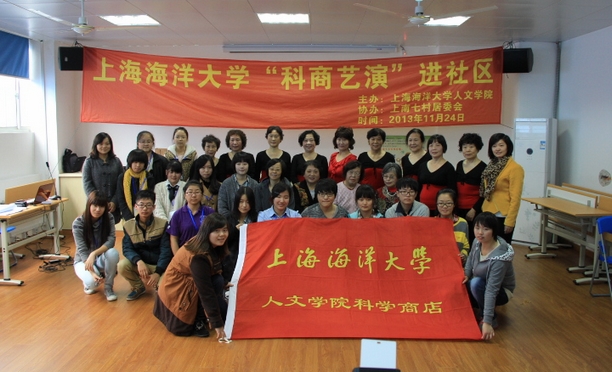 2013年11月24日,上海海洋大学人文学院科学商店(劳动与社会保障服务部)志愿者来到人文学院科学商店周家渡门店(浦东新区的周家渡社区上南七村),开展了大型志愿者活动“科商艺演进社区”。此次活动由人文学院科学商店主办、上南七村居委会协办,旨在丰富居民的社区文化生活,更全面的认识上海海洋大学科学商店。科学商店辅导老师王艺霏和上南七村居委会书记李丽娜参加了此次活动。