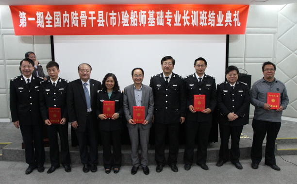 来自内陆沿海23个省市7个名族的37名学员,通过在上海海洋大学四十多天的培训学习,顺利获得了结业证书,这也是全国内陆骨干县(市)验船师基础专业千人培训计划的第一批结业的学员。李杰人局长、潘迎捷校长、周全局长和凤要武总工为学员颁发结业证书。