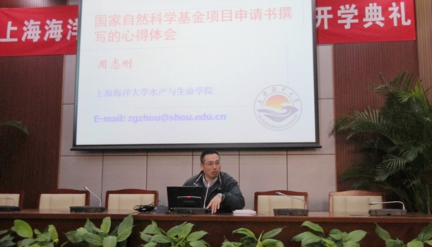 周教授首先从前期准备工作,申请书基本框架、题目、项目摘要、立项依据、研究方案、可行性与创新、年度计划与预期成果、研究基础与工作条件、经费承诺与签字等十个方面详细且深入浅出地介绍如何写好国家自然科学基金项目申请书,并以自己最新申报项目的申请书为例进行细致的讲解和分析。随后,周教授以水产学科为例,系统介绍了2013年国家自然科学基金项目评审情况,不仅详尽介绍评审当中的规则和注意事项,而且结合我校实际项目申报情况进行对比分析。结合自己申报经验和评审心得,周教授给出了自己的六点体会与大家分享:第一,题目精练、明确、新颖;第二,凝炼科学问题,把握研究方向;第三,申请书撰写要整洁,表明态度认真;第四,个人背景真实,经得起查证;第五,模式生物研究应考虑好对口学科;第六,力争函评优秀。