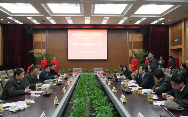 11月28日,上海市食品药品监督管理局与我校在图文中心102会议室举行党委中心组联组学习会。上海市食品药品监督管理局党委书记、局长阎祖强,党委副书记徐枫、巡视员谢敏强、副局长顾振华和校领导吴嘉敏、潘迎捷、汪歙萍、何雅、顾乃达等出席会议。阎祖强局长、潘迎捷校长分别就上海市食品安全形势和我校食品安全教学、科研工作作了专题汇报。联组学习会由校党委书记吴嘉敏主持。