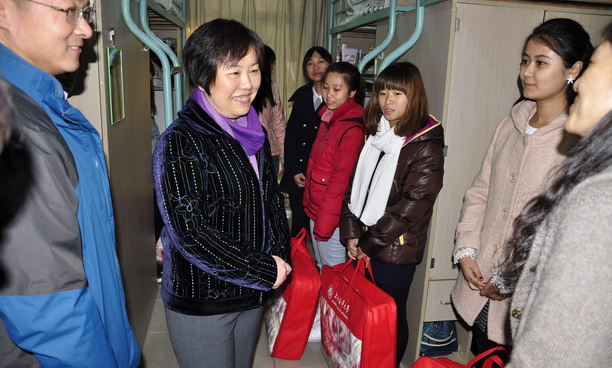 寒冬将至,学校启动“冬季送温暖”系列活动。2013年12月3日下午,校党委副书记汪歙萍、学生处、学院和社区等相关部门负责人为家庭困难的部分学生送上保暖物品。