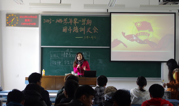2013年12月3日下午,海洋科学学院在2049教室召开团干培训大会,培训由院团委书记郑飞主讲。海洋科学学院团委成员、学生会骨干及各班班长、团支书参加培训。此次培训打破“老师讲学生听”的传统模式,而是采用理论传授与现场抢答相结合的形式,旨在营造轻松愉快的培训氛围,让广大团学干部在互动中理解共青团的工作。