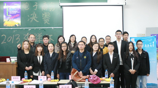 本次决赛的形式由团队成果展示和评委提问选手答辩两个环节组成,进入决赛的参赛队伍共有九支。团队的成员既有同专业同学组成也有跨学院跨专业的合作,各个团队展示了比赛以来开设的网络店铺、制作的电子优惠券、组织的团购活动、微信微薄优酷等各种平台的网络营销以及实际销售成果,可谓各具特点,各有千秋。经过近三个小时的激烈角逐,最终由Magic Home 团队(严春月,2011级物流管理;王宇琛, 2011级国贸;王阳, 2011级信息管理;陈妍红,2012级会计)以最高分夺得2013海洋杯电子商务大赛的冠军,电商一号(刘杰,2013级农经管硕士研究生;张瑶,2012级物流管理;曹泽英,2012级会计)和“吃货爱夏天”(2013级物流管理专业的耿佳莹、金宇琪、马思凡)分获第二和第三名。
