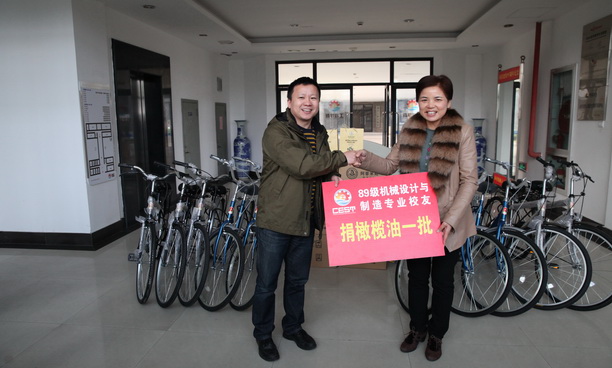 为了表达对母校培养、对学院关心的感激之情,全体校友向工程学院捐赠自行车一批、橄榄油一批,为母校加油、为学院加油。王明华书记代表学院接受捐赠。