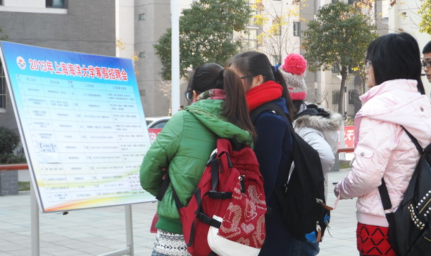 为了满足同学寒假勤工助学的需求,保障我校学生合法权益,2013年12月10日,上海海洋大学寒假校外勤工助学招聘会在海星广场举办,招聘会邀请屈臣氏、顺丰快递、卜蜂(易初)莲花、金钱豹、大润发超市等11家企业出席,提供促销员、理货员、面包师、收银员等30多种岗位种类,吸引了近千名大学生前来现场应聘。