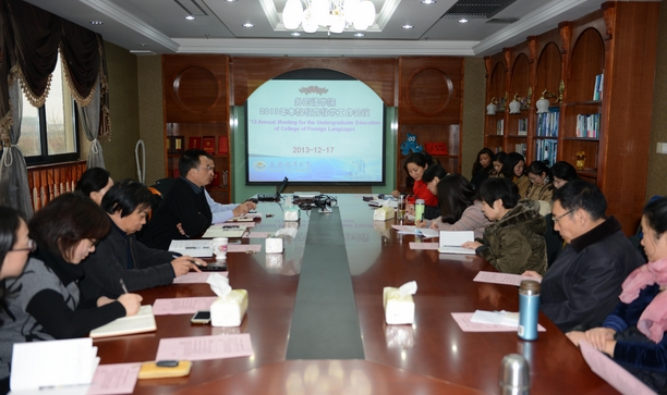 12月17日下午,外国语学院2013年本科教育教学工作会议在行政楼406会议室举行。教务处处长张宗恩、副处长陈慧、外国语学院领导、基层教学组织负责人、教学工作委员会委员、教学一线正、副教授共30余人参加了本次会议。会议由教学副院长周永模主持。